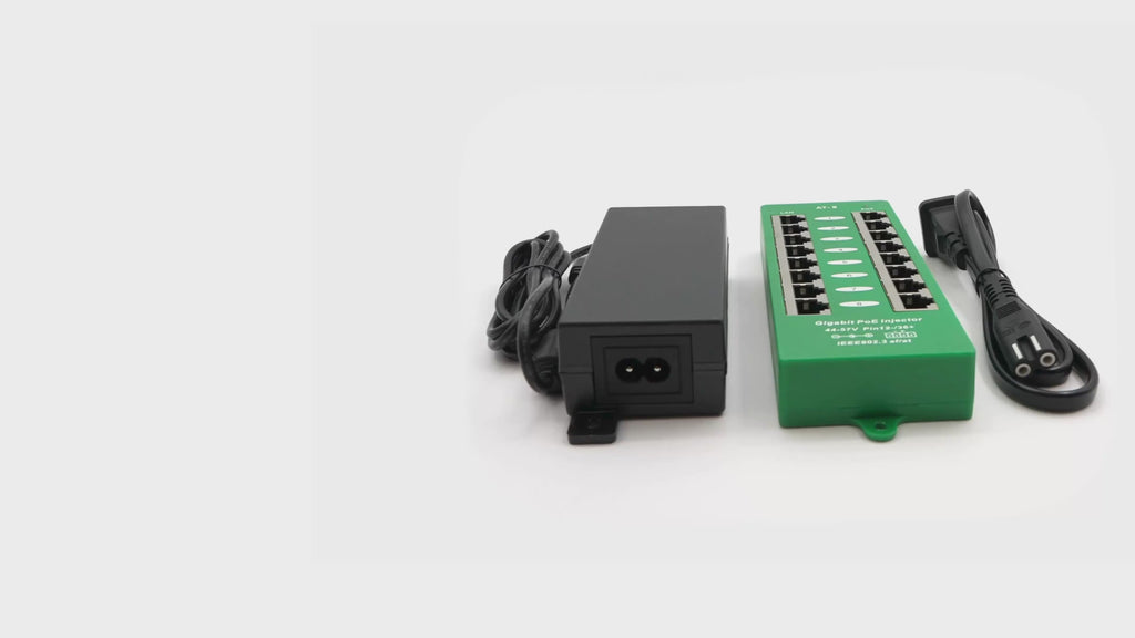 8 Port Active Gigabit Mode A PoE Injector with 48 Volt 60 Watt Power Supply